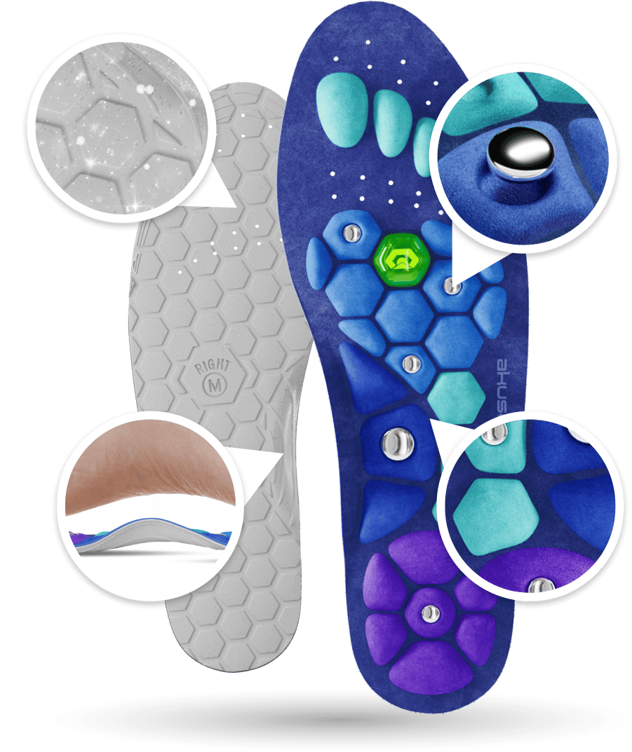 Based on this, Berriglow insoles feature magnets placed in pressure points corresponding to specific parts of the body, for all-day relief.